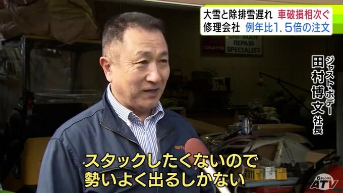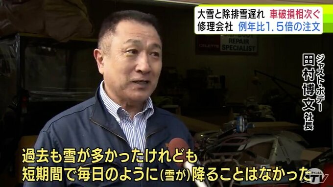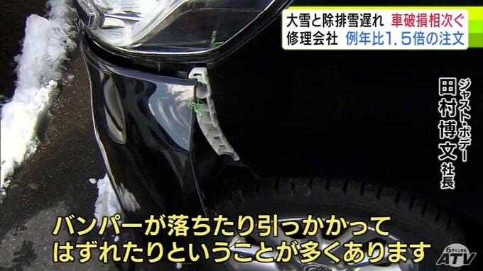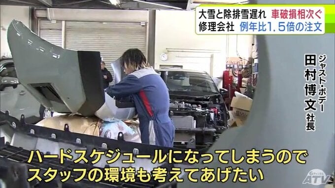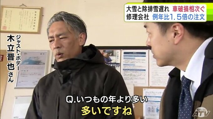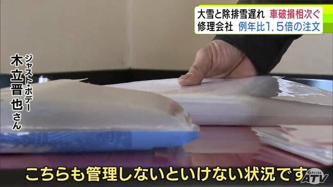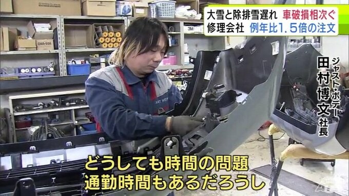 車の破損が相次ぐ “記録的な豪雪”と除排雪の遅れで悪路になり… 青森市の修理工場には平年の冬場の1.5倍ほどの注文殺到 「作業追いつかない」スタッフも疲弊 青森テレビ 2026年2月18日(水) 21:34 国内