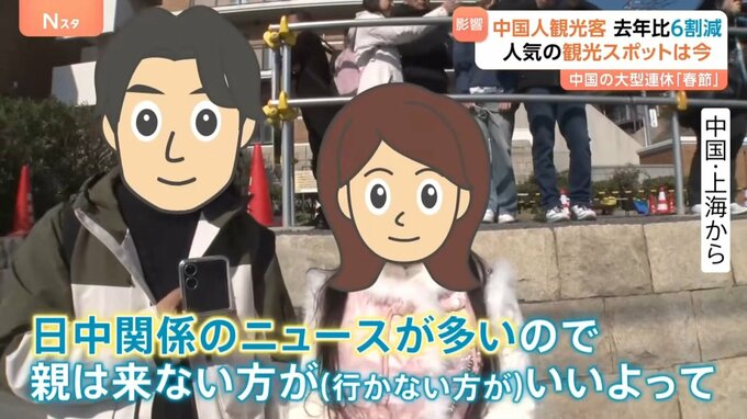 中国政府による日本への渡航自粛が呼びかけられる前は、撮影スポットに大勢の観光客がいましたが、18日に同じ場所に行ってみると、その数は2025年と比べて少ない印象です。
