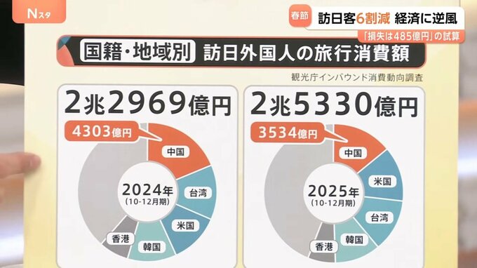 一方で、SOMPOインスティチュート・プラスの小池理人 上級研究員によると「(購買単価などが去年と同じとすると)春節期間の消費額は485億円減り、GDPを0.01%押し下げることになる」といいます。