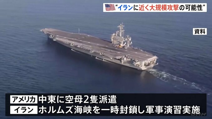 また、アメリカが中東に空母2隻を派遣する一方、イランも石油輸送の要衝ホルムズ海峡を一時封鎖して軍事演習を実施するなど、軍事衝突の懸念が高まっています。