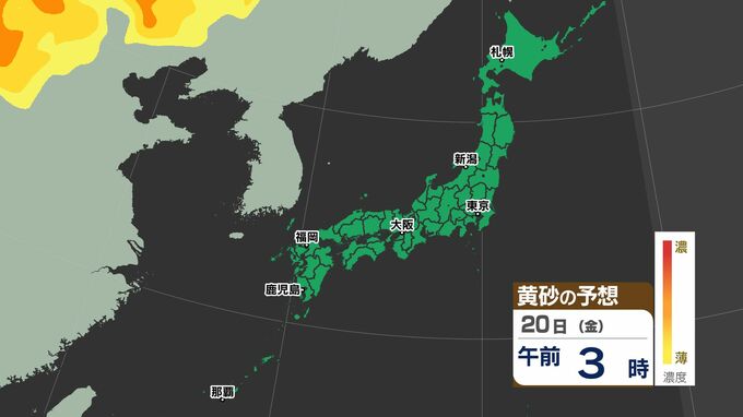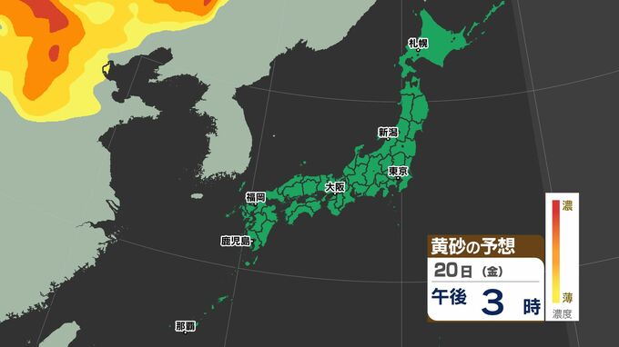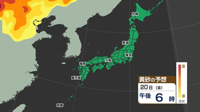 【黄砂 3連休に飛来か?】3連休は「花粉と黄砂」のダブルパンチ【黄砂のシミュレーション20日(金)~22日(日)/ 全国各都市の週間予報】 南日本放送 2026年2月19日(木) 10:30 国内 天気 黄砂のシミュレーション20日(金)~22日(日) シミュレーションでは22日(日)に日本に飛来する予想です。また、23日(月祝)以降も日本に影響があるおそれがあります。 この記事をはじめから → 【黄砂 3連休に飛来か?】黄砂シミュレーション