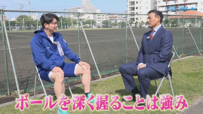 中西投手「僕が野球を始めたときからグッと握ります。でも、色んな人に意見もらった時に一緒の人がいないので、どうしようかそこも工夫しているところ」
