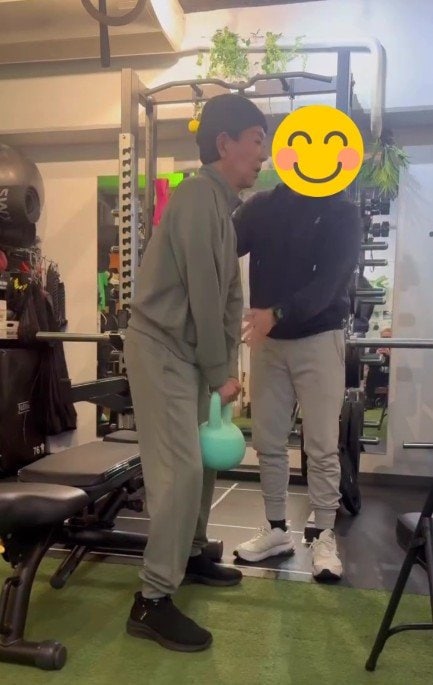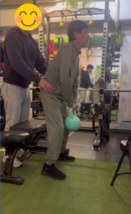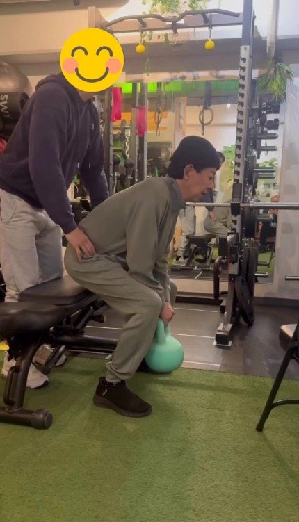 動画には、トレーニングウェア姿の美川さんが、ジムのような場所で、トレーナーとみられる男性に付き添われ、重りを手に黙々とスクワットに励む姿が収められています。