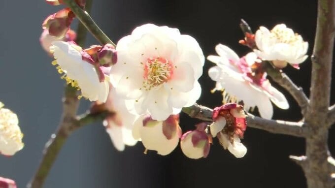 熊本県の天然記念物に指定されている「兜梅」(かぶとうめ)が天草市で見頃を迎えています。