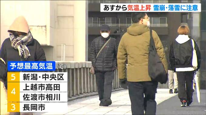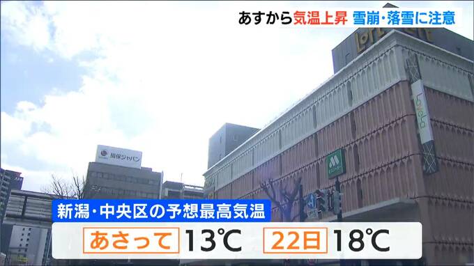 新潟県内は20日から気温が一気に上がり、21日は、3月下旬から4月上旬並みの暖かさとなるところがある見込みです。