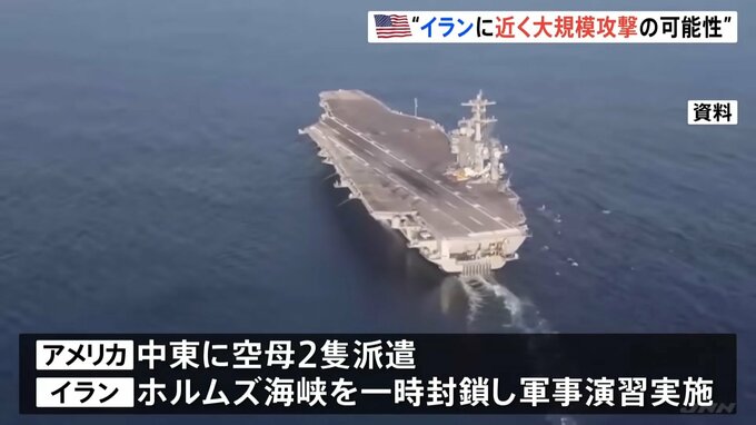 アメリカが中東に空母2隻を派遣する一方、イランも石油輸送の要衝ホルムズ海峡を一時封鎖して軍事演習を実施するなど、軍事衝突の懸念が高まっています。