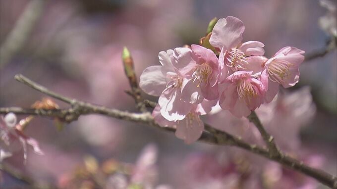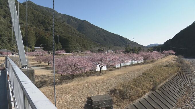 早咲きの「河津桜」約100本が見頃に 例年よりも1か月早く開花 ここ数日の暖かさで一気に“満開” 三重・紀北町