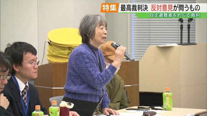 避難者を支援している熊本美彌子さん「私はこの三浦裁判官の判決(少数意見)というのを大事に大事にして、私たちは使わせていただくと。そして非常にみじめな状態にある避難者たちが、やっぱり自分たちの権利をきちんと主張できるようにしていきたい」