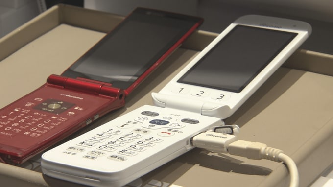 「3G回線の『FOMA』の携帯と『ガラホ』と呼ばれている4G回線の携帯。それを充電器を差し込んだ状態でデータ移行を行っていきます。基本的にスタッフがサポートをさせていただいてますので、データに関してはご安心いただければと思います」