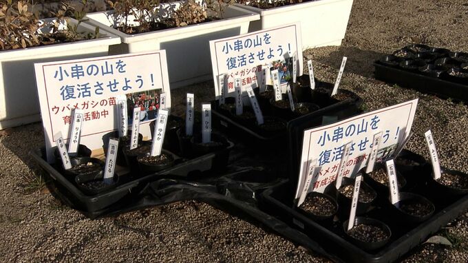 小串小学校の児童が遠足で行っていた貝殻山の広場の景色も、変わってしまったと言います。そんな中、去年11月、備前県民局から学校にドングリと苗、合わせて80個が寄贈されました。協力して育てて芽が出たあとは山に植樹する計画です。