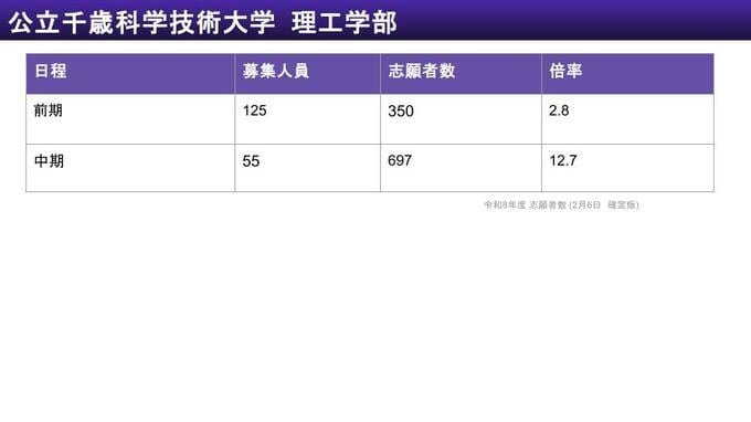 公立千歳科学技術大学 理工学部 中期の倍率は12.7倍