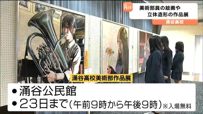 高校の美術部員が描いた絵画や立体造形などを展示した作品展が、宮城県涌谷町で開かれています。会場には、涌谷高校美術部の1年生から3年生までの全部員16人が描いたアクリル画や油絵、それにポスターなどの作品38…