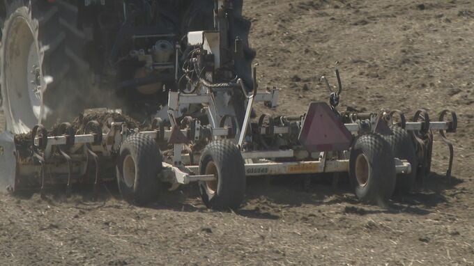 コメ作りに変化「乾いた田んぼに直接種まき」