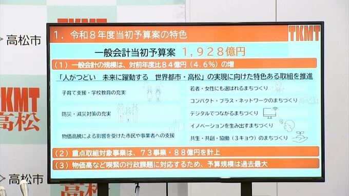 高松市は、一般会計で1928億円の新年度当初予算案を発表しました。