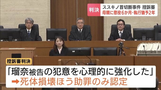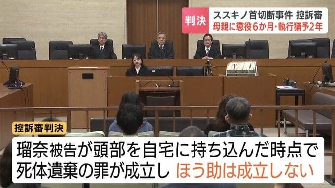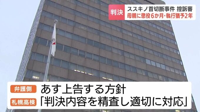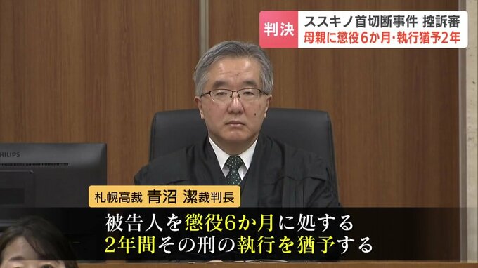 死体遺棄と損壊を手助けした罪に問われた母親に対し、札幌高裁は19日、1審判決を破棄し、より軽い懲役6か月・執行猶予2年の判決を言い渡しました。