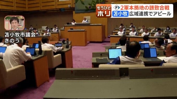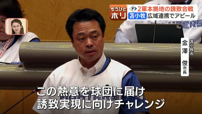 18日開会した苫小牧市議会です。議員や市長がファイターズのユニフォームを着て、熱意をアピール。