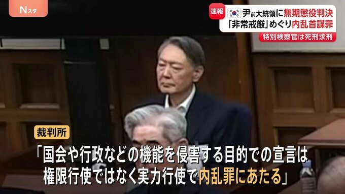 韓国でおととし12月の非常戒厳宣言をめぐり、内乱を首謀した罪に問われた尹錫悦前大統領に対し、ソウル中央地裁は先ほど、無期懲役を言い渡しました。ソウルから中継です。テレビ局が生中継するなど大きな注目を集…