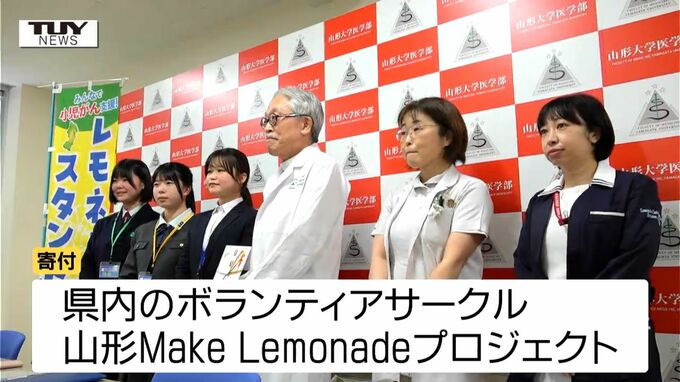 きょう山形大学医学部に寄付金を贈ったのは、県内のボランティアサークル「山形Make(メーク)Lemonade(レモネード)プロジェクト」です。