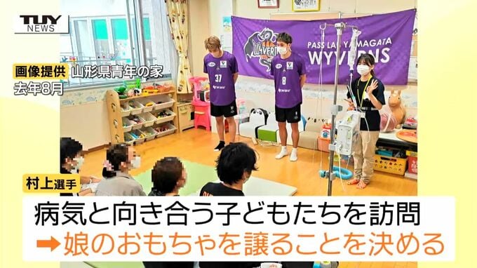 村上選手は去年8月に、病気と向き合う子どもたちの元を訪問したことをきっかけに、5歳の娘が使っていたおもちゃを譲ることを決めたということです。