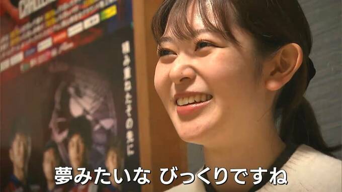 「そうです。書いてほしいっていう風に言われて。それが初めての仕事です」「『字が筆文字になるだけでこんなにパワーをもらえるんだ』と、サポーターから結構お声がけはいただきました。夢みたいな…、びっくりですね(笑)」【画像⑥】