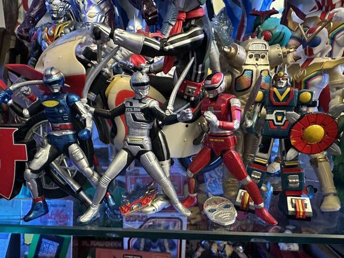 部屋の奥には、大きなショーケースにウルトラマンやウルトラ怪獣、戦隊シリーズや宇宙刑事シリーズなどのフィギュア類がずらりと並びます。
