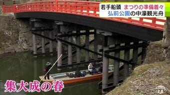 「弘前さくらまつり」の名物 堀を運航する「中濠観光舟」 風を読み5mの竹竿で舟を操る若き船頭たちの努力と運航への想い 開幕まで数日 観光客を迎える側も高まる熱 青森県弘前市