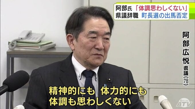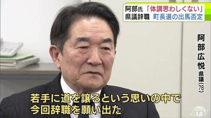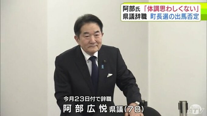 辞職の理由は「体調が思わしくない」「若手に道を譲りたい」 2月23日付で辞職の青森県議会の阿部広悦 県議 藤崎町の町長選への出馬は「一切ない」と否定 青森テレビ 2026年2月19日(木) 21:10 国内