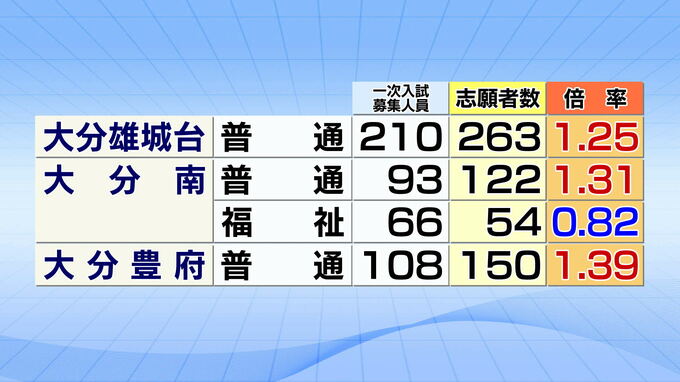 大分県立高校一次入試2026志願倍率一覧 最高倍率は大分舞鶴と大分上野丘で「1.44倍」 次いで大分豊府「1.39倍」【全校・全学科の出願倍率一覧掲載】|TBS NEWS DIG
