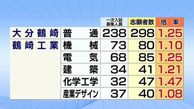 大分県立高校一次入試2026志願倍率一覧 最高倍率は大分舞鶴と大分上野丘で「1.44倍」 次いで大分豊府「1.39倍」【全校・全学科の出願倍率一覧掲載】 大分放送 2026年2月19日(木) 18:23 国内