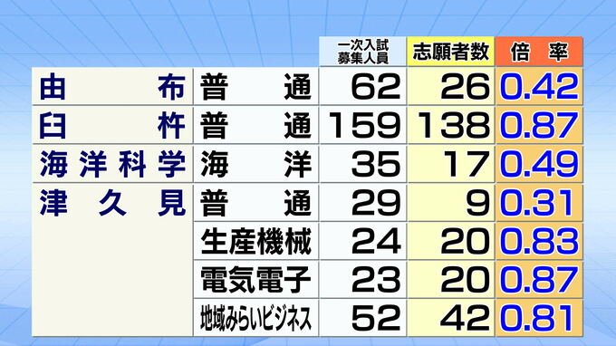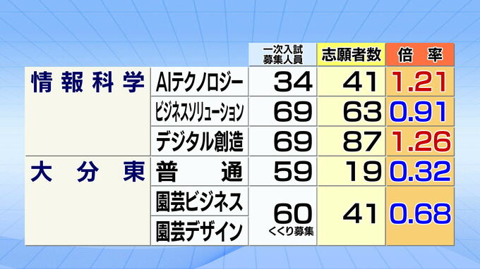 佐伯鶴城、佐伯豊南、三重総合、竹田、久住高原農業、玖珠美山、日田、日田三隈、日田林工の志願倍率