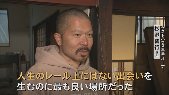 富井さん「余ったおかずを物々交換で回したり、海と山の恵みを存分に味わえる場所だと思う。そういう豊かさが素敵だと思って黒島に取りつかれた。杉野さんの言葉を借りると、人生のレール上にこの場所が無ければ交わらなかった人たちがこのゲストハウス黒島を通じて交わっていける、ちょっとずつ積み重ねられるような場所にして行けたらいいなと思う」