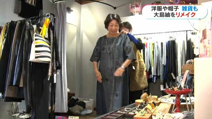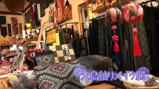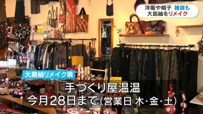 大島紬リメイク展は今月28日まで、営業日の木曜日から土曜日に開かれます。