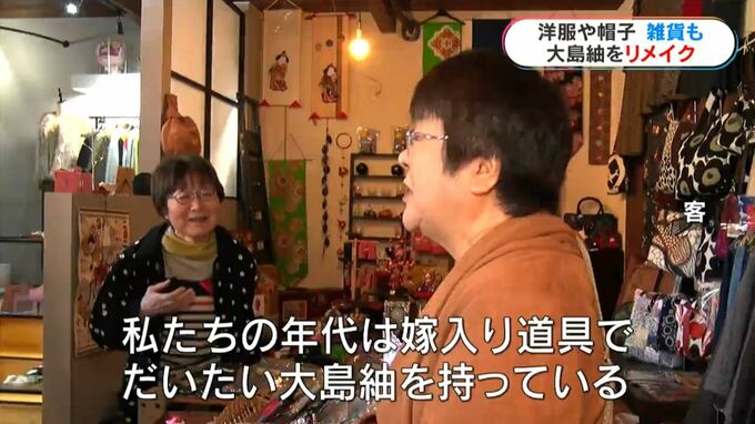 (客)「私たちの年代は嫁入り道具で、大体、大島紬を持っている。でももう着ないからリメイクしてあるといいよね」