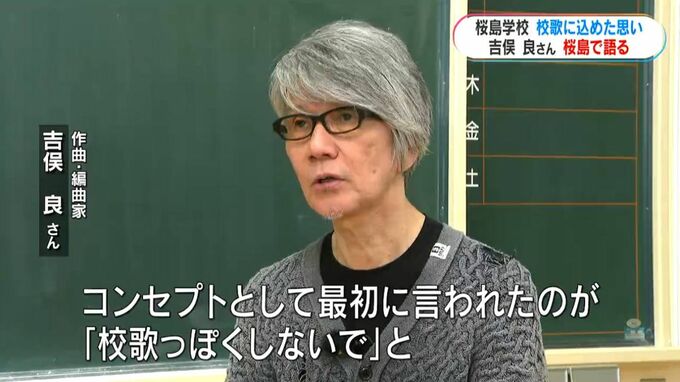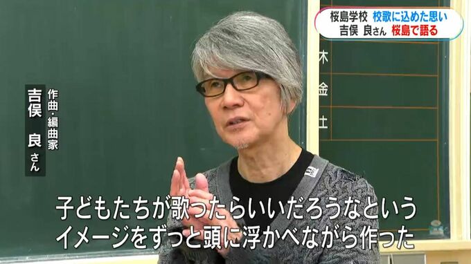 桜島をイメージした。子どもたちが歌ったらいいだろうなというイメージをずっと頭に浮かべながら今回の曲を作った」