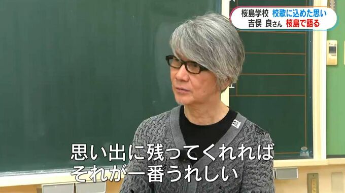 (吉俣良さん)「大人になっても、この校歌を歌うと桜島からキバレよ!って声をかけてもらっているんだという気持ちで。何かの壁にぶつかった時も、もしかしたらこの校歌を歌って“生きている 生きている”と歌うことで、ちょっとでも元気になったりとか。思い出に残ってくれれば、それが一番うれしい」