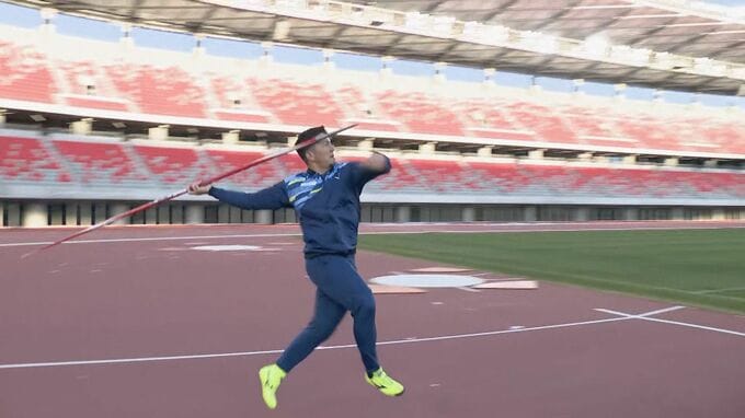 「名古屋市瑞穂公園陸上競技場」に現れたのは、日本やり投げ界のエース、ディーン元気選手や、オリンピック4大会連続出場中の短距離・飯塚翔太選手ら3人です。アジア大会に向けた改修が、来月末に終わるのを前に、トップアスリートたちが新しくなった競技場のトラックを走り、足元の感触を確かめました。