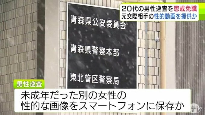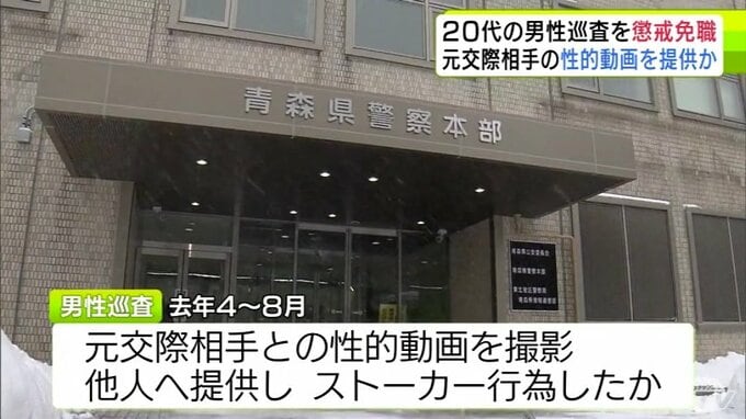 【詳報】動画提供は「自慢したかった」ストーカーは「再度性的な関係を持ちたかった」など… 元交際相手との性的な動画をスマホで撮影→他人へ提供のほかストーカー行為などで20代男性巡査を懲戒免職 青森県警 青森テレビ 2026年2月19日(木) 21:52 国内