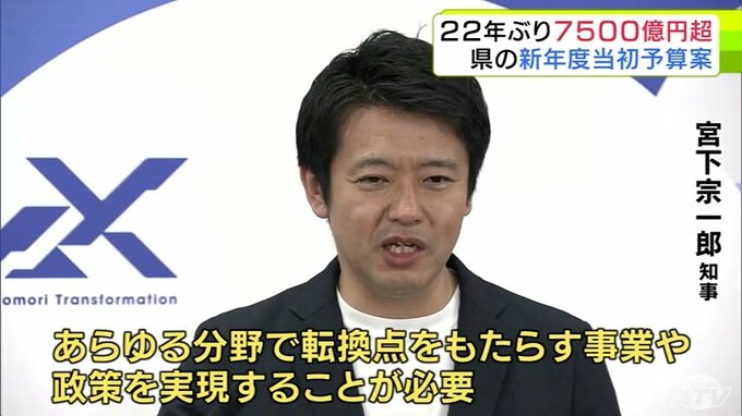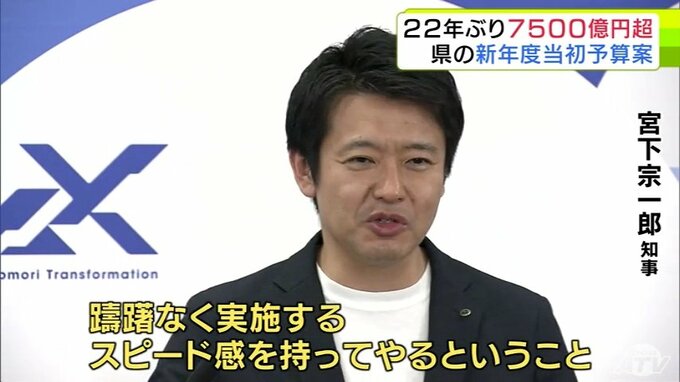 予算規模は22年ぶりに7500億円超 青森県・宮下宗一郎 知事が「青森新時代の新たな挑戦」と銘打ち新年度当初予算案を発表