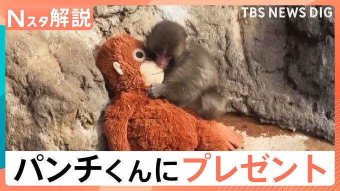 市川市動植物園のオスのニホンザル「パンチ」くんにプレゼントです。千葉県・市川市動植物園のニホンザル、パンチくん(6か月)。“お母さん代わりのぬいぐるみ”を引きずりながら一生懸命歩いています。実は母ザ…