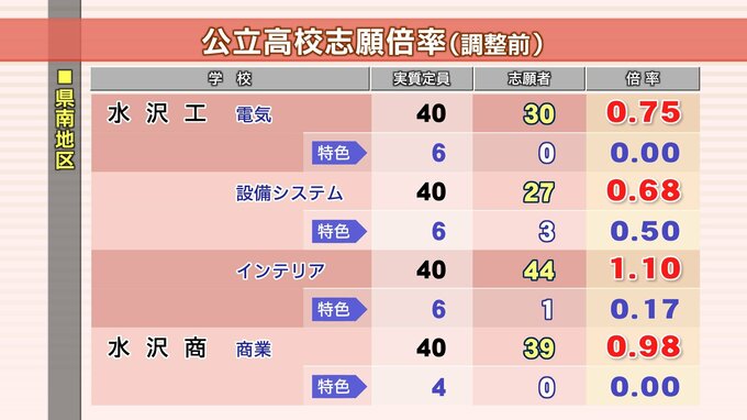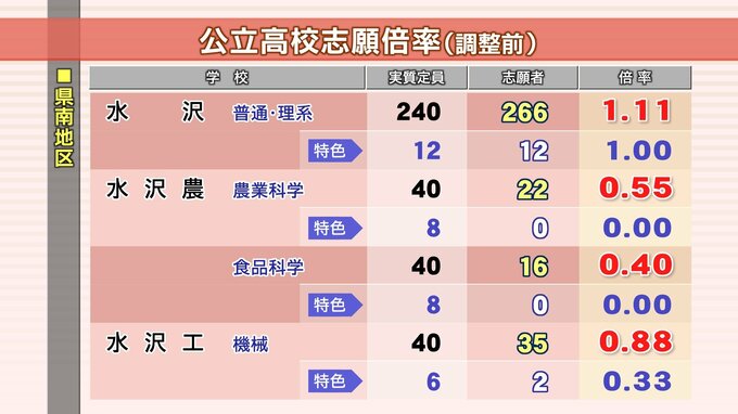 県南地区 調整後の志願倍率