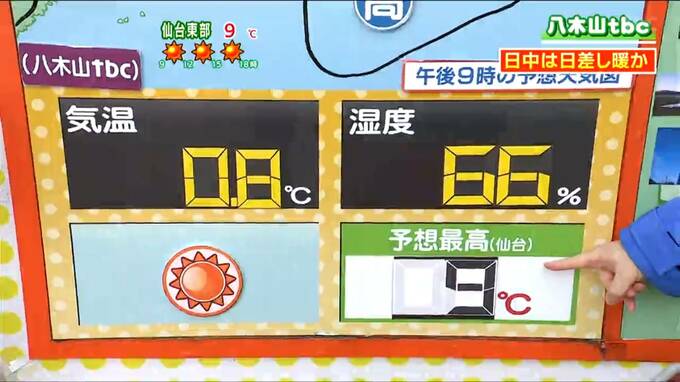 最高気温は仙台で9℃などと、19日よりも5℃前後高くなり、3月上旬から中旬並みとなる見込みです。この後日中は日差しが心地よく感じられてきそうです。