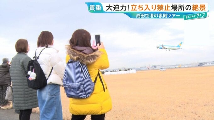 そしていよいよツアーの目玉、バスを降りて間近で楽しめる、離着陸の見学です。