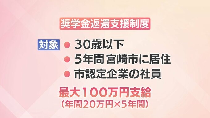 30歳以下で、5年間市内に住み続ける市の認定企業の社員を対象に、最大100万円を支給します。