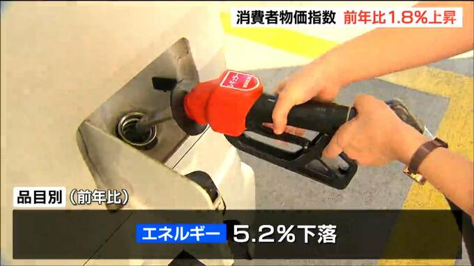 一方、政府の補助金などを受けて電気代やガソリン、灯油などの「エネルギー」は5.2%下落していて、全体としての物価の上がり幅は2025年に比べやや鈍化しています。