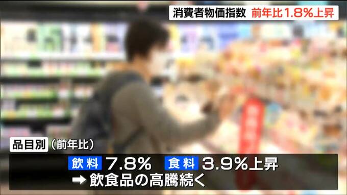 家庭で消費するモノやサービスの値動きを見る消費者物価指数について、1月、仙台市では生鮮食品を除いた指数が去年に比べて1.8%上昇しました。