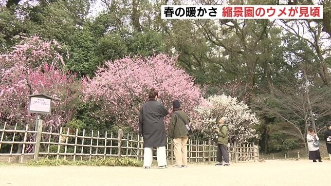 21日からの3連休は気温が上昇し、春の暖かさとなる見込みです。広島市の縮景園ではウメが見頃を迎えています。