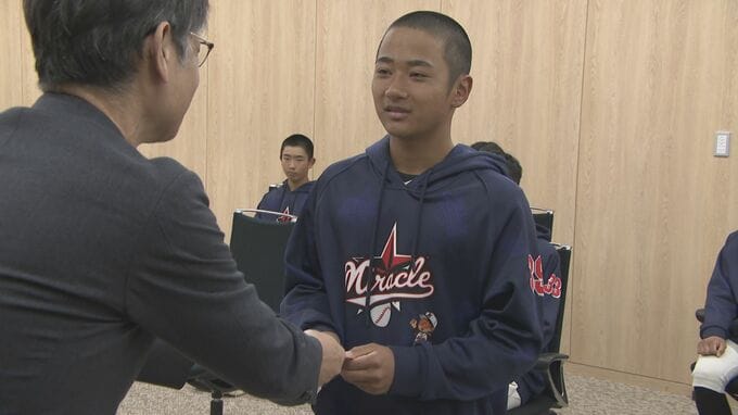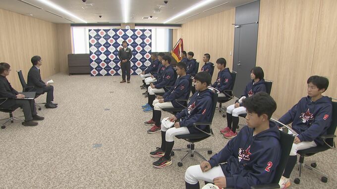 春の全国大会に出場する山口市の中学生の軟式野球チーム・山口ミラクルクラブの監督と選手が18日、伊藤和貴市長を訪ねました。