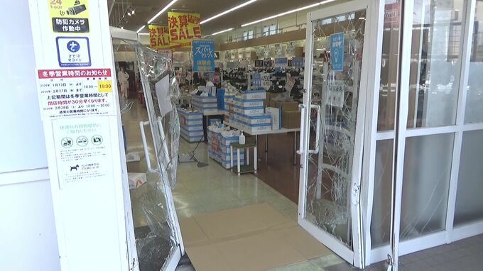 20日午前11時過ぎ、長崎県佐世保市松原町にある「シュープラザ矢峰店」の入口ドアに乗用車が突っ込みました。