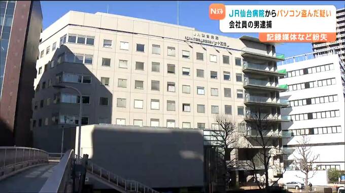 仙台市内にあるJR仙台病院からパソコンを盗んだとして会社員の男が逮捕されました。JR仙台病院では患者の個人情報が保存された記録媒体などが紛失していて男は警察に自首してきたということです。
