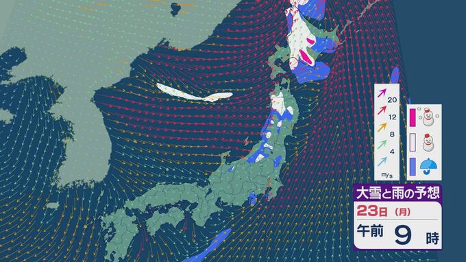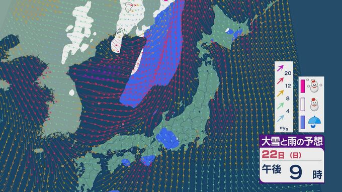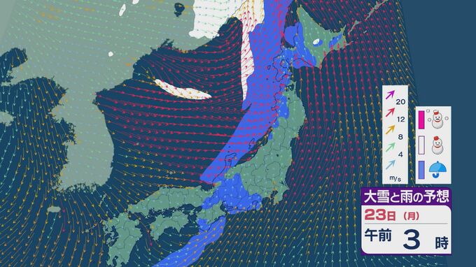 大陸の低気圧からのびる寒冷前線の通過で22日(日)から23日(月)は北陸など日本海側で雨や雪に 週明けも25日(水)にかけ太平洋側でも雨が降りやすい天気に 雨・雪と風シミュレーション 北陸放送 2026年2月20日(金) 15:22 国内 雨・雪と風の予想ですが、22日夜のはじめごろから日本海で発達した雨雲が北陸や東北の日本海側にかかる見込みです。23日の未明を中心に雨の降るところが多いでしょう。